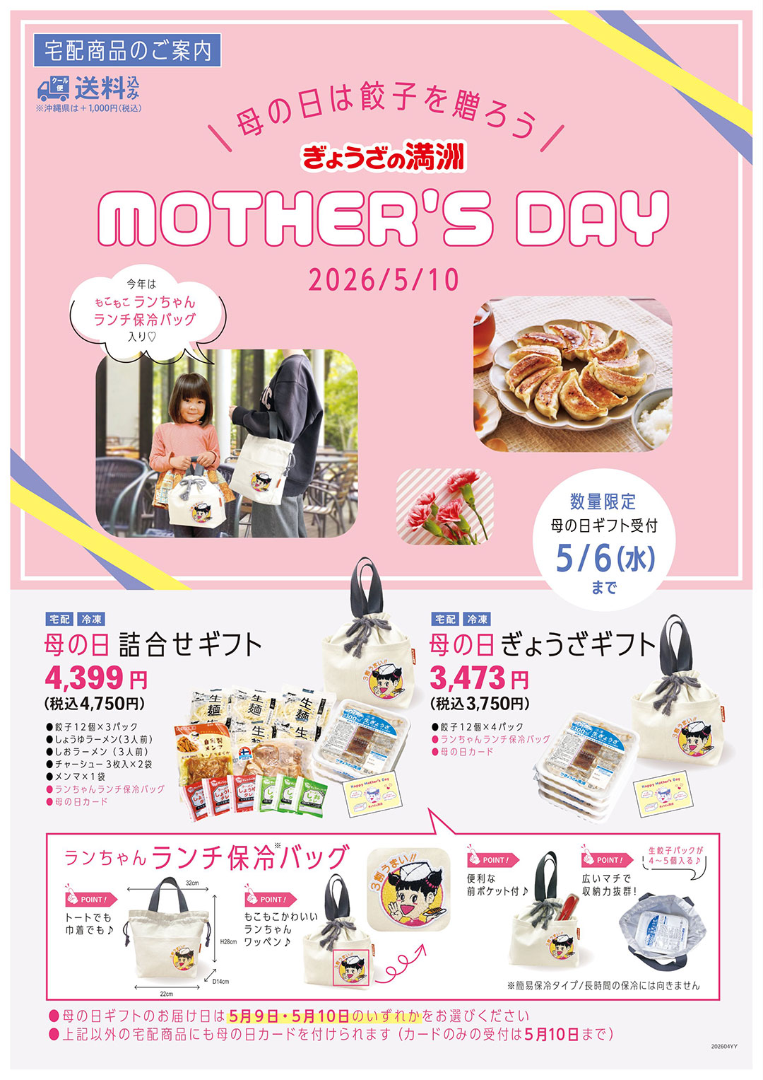 ご注文はオンラインショップ、ぎょうざの満洲全店にて 6/15㊐ まで