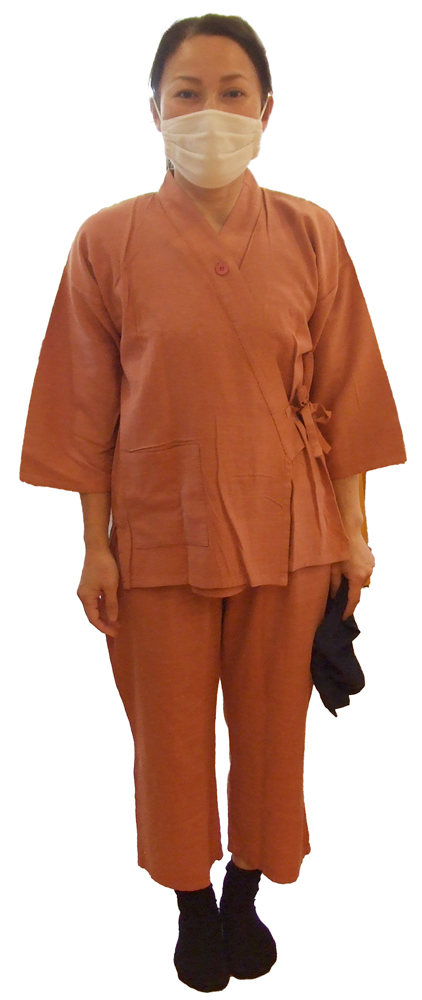 作務衣の女性用着衣イメージを東明館のスタッフさんにお願いして撮ってもらいました。